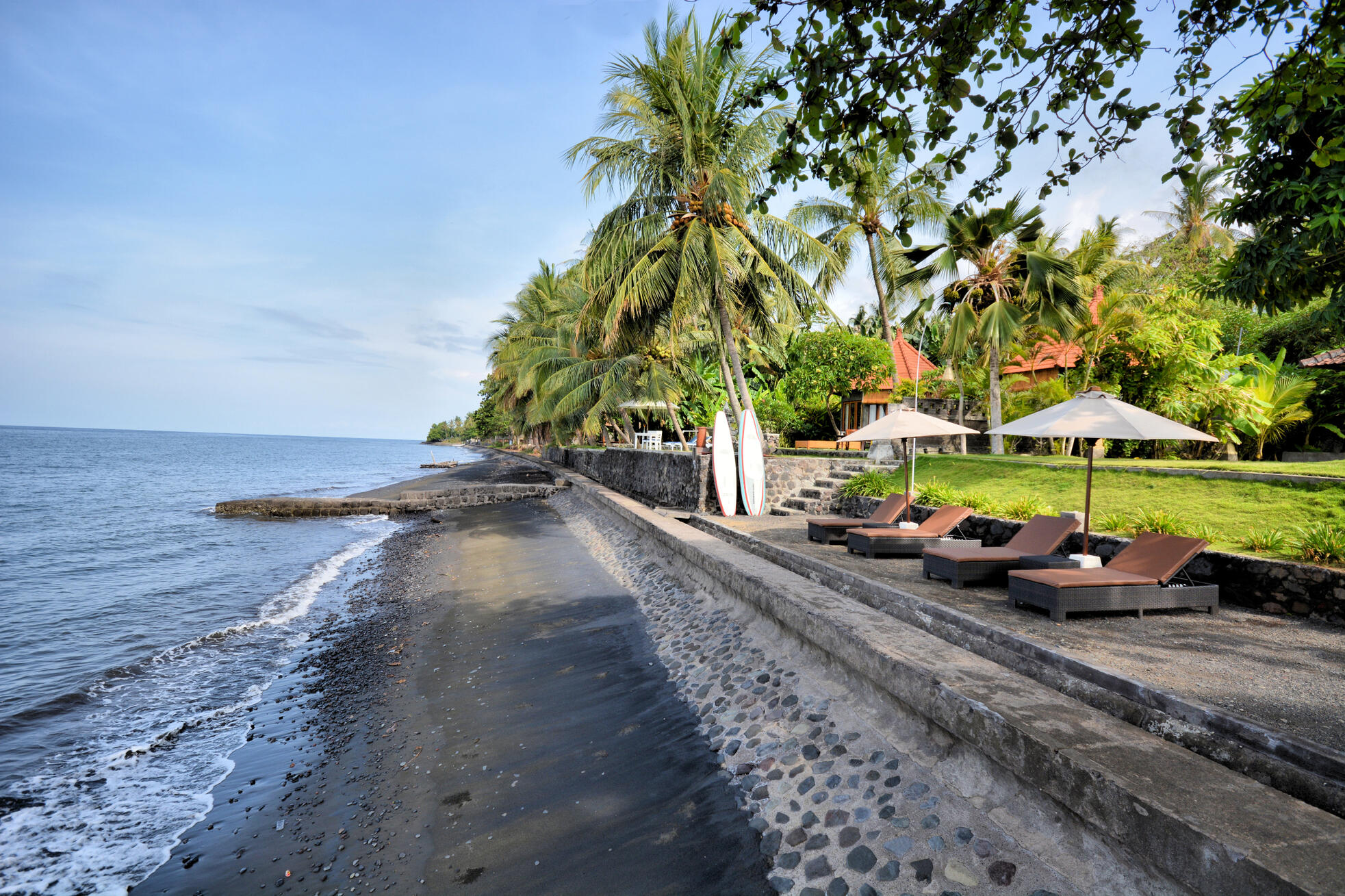 If you book Villa Swastiastu you can enjoy our romantic and luxury Villa and you can also relax at the beach on our Swastiastu beach sunbeds, which are placed direct at the ocean in the garden of our partner-restaurant "Warung Pesisi". Just a 5 minutes scooterdrive from our Villa.